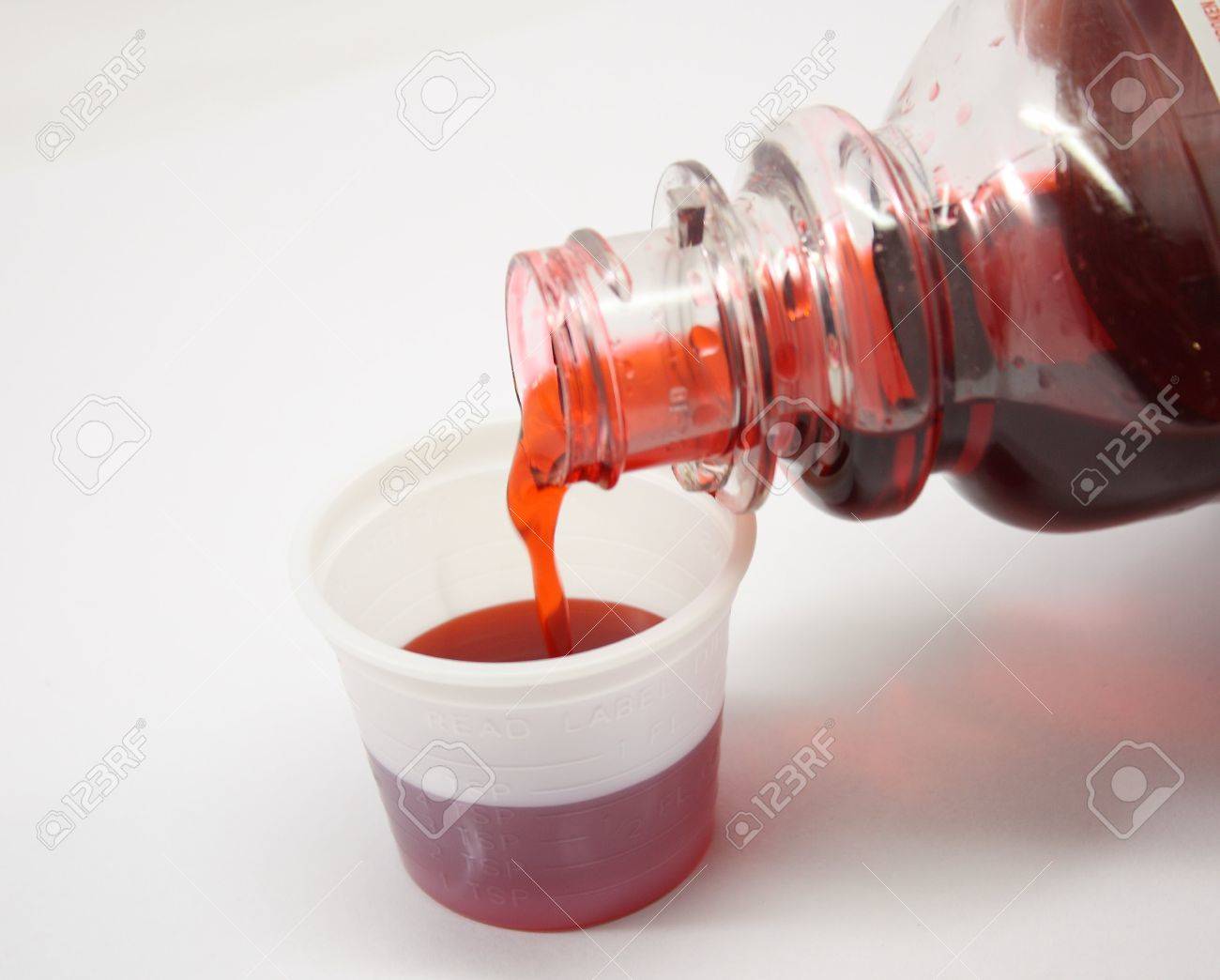 Cough Medicine Pouring Into Measuring Cup On White Background Stock Photo Picture And Royalty Free Image Image 597828